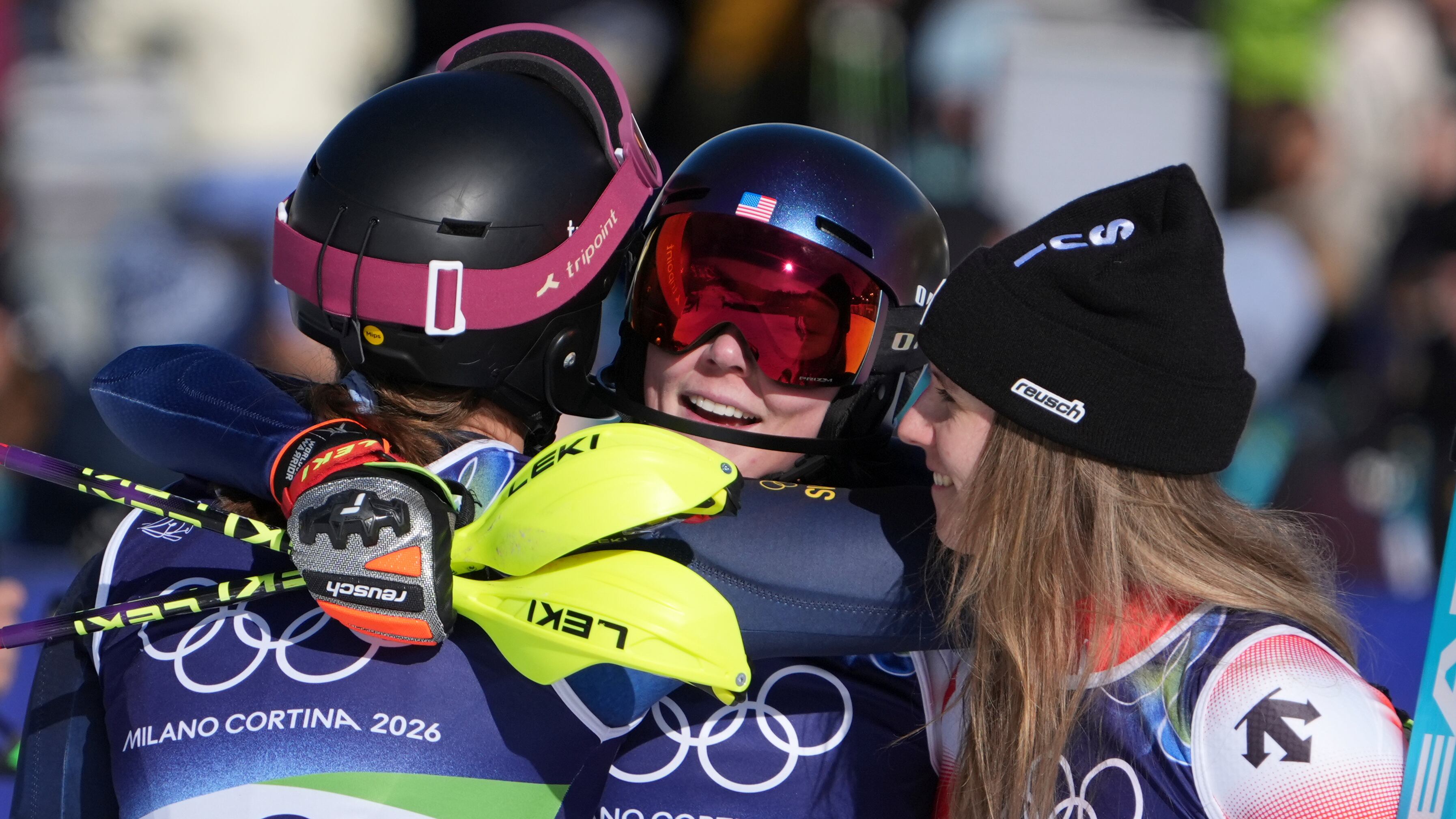 Twelve years later, she delivered again in her favorite race and the emotions came out in the finish area after being embraced by world champion Camille Rast of Switzerland, who took silver, and bronze-medalist Anna Swenn Larsson of Sweden.